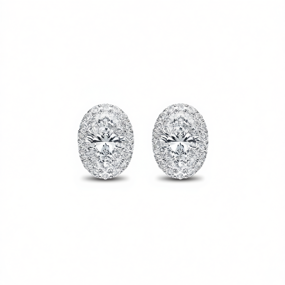 White Gold Oval Cut Diamond Stud Earrings Classic Wedding Jewelry For Women Circling Setting Fine Earrings