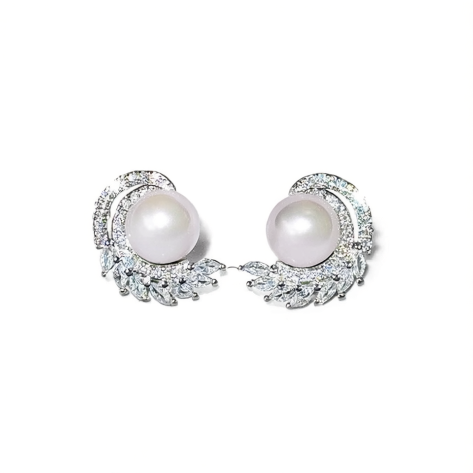 White Gold Pearl Stud Earrings 925 Silver Marquise Cut Diamond Flower Design Classic Wedding Jewelry For Women