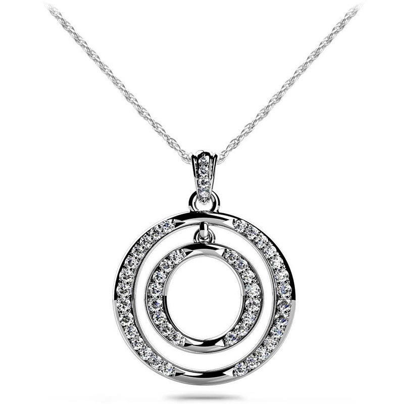 Collana con Ciondolo in Oro Bianco con Cristalli e Strass, Design Geometrico Circolare, Catena a Serpente Classica da Donna per Uso Quotidiano