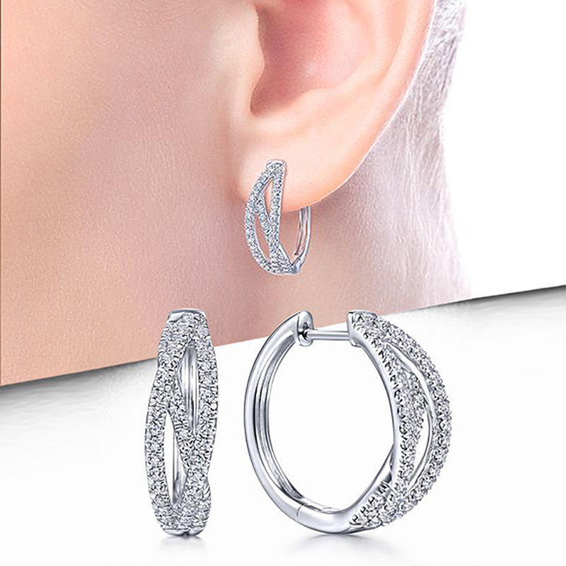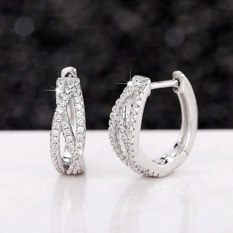 Orecchini a Cerchio in Argento 925 Placcato Oro Bianco con Cristalli e Design Geometrico, Gioielli di Lusso da Donna per Uso Quotidiano