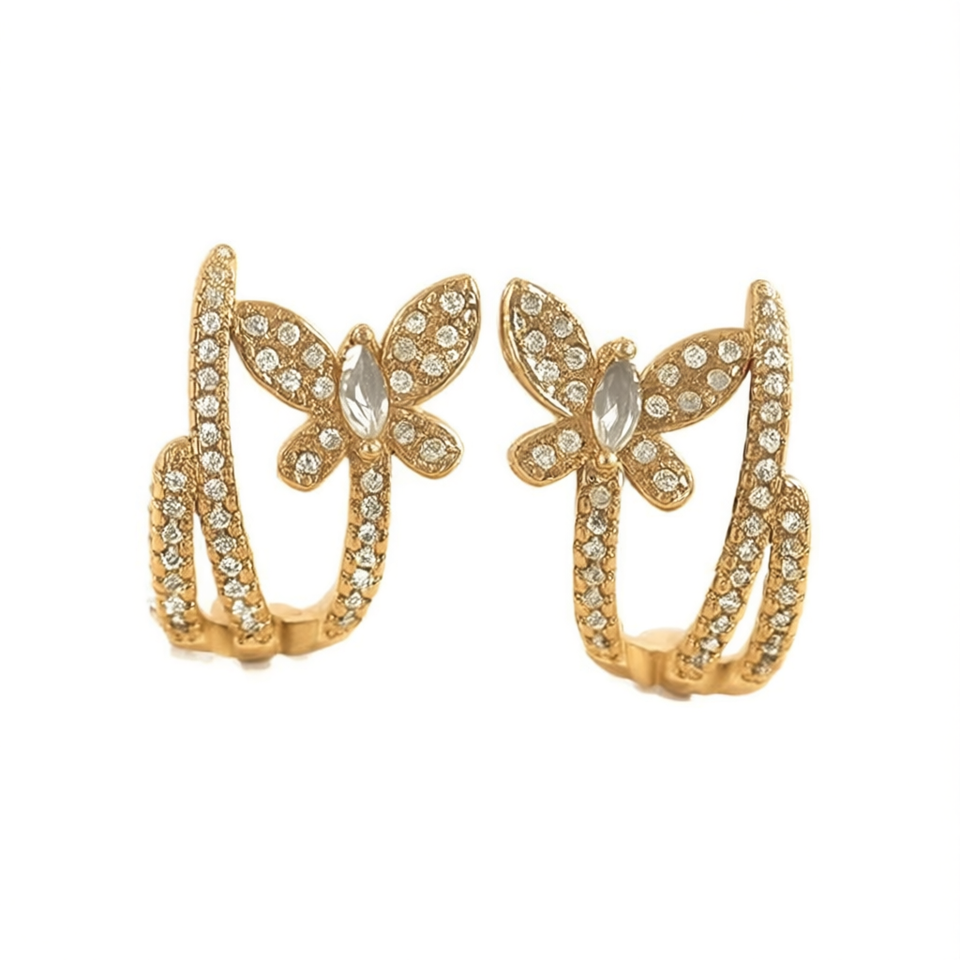 Orecchini a cerchio a forma di farfalla placcati in oro bianco con intarsi di cristalli per donna, gioielli in lega di zinco da indossare tutti i giorni