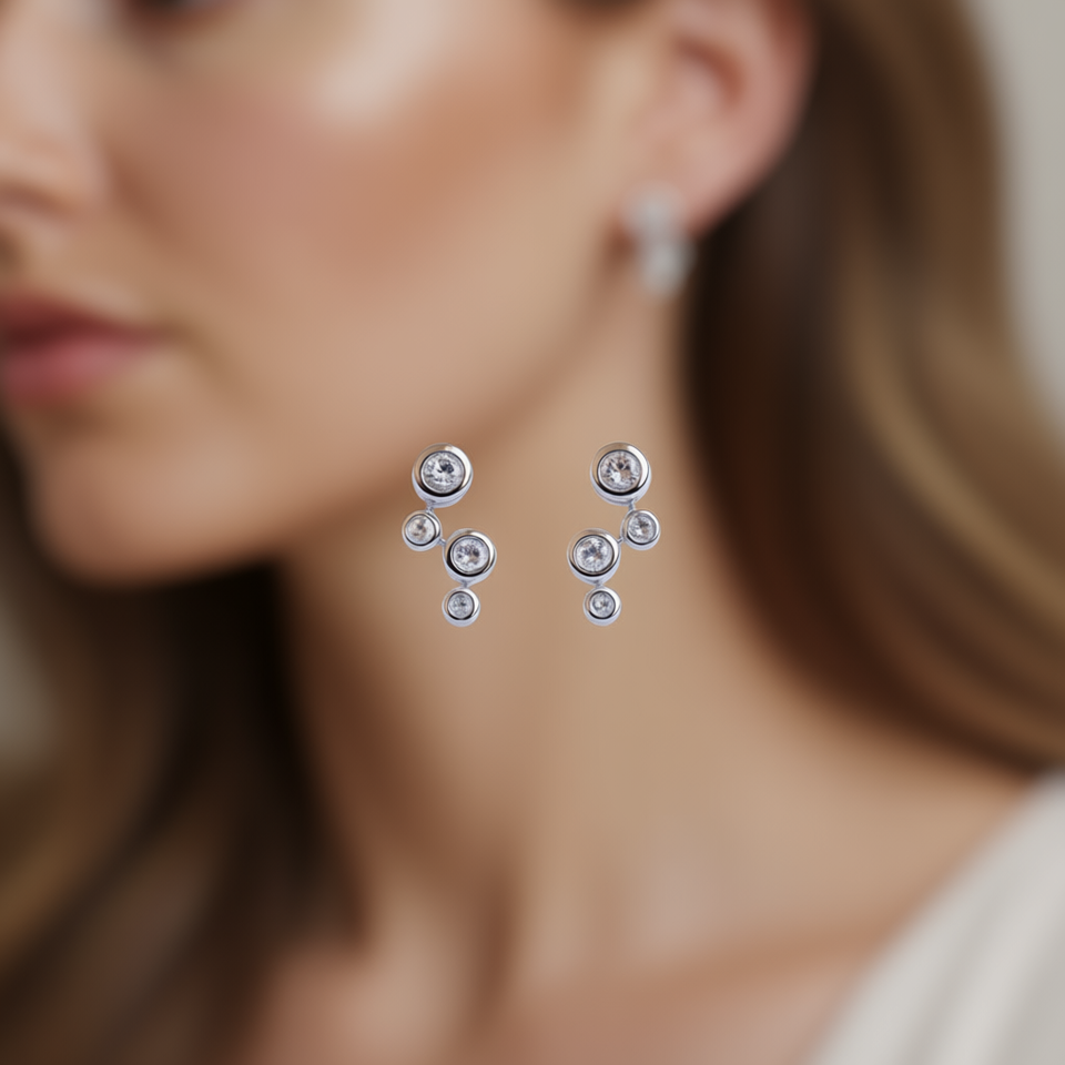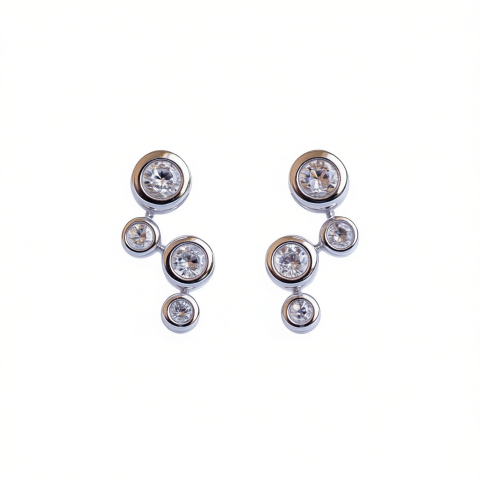 White Gold Plated Stud Earrings With Round Crystal Rhinestones Geometric Design For Women Party Jewelry Classic Style