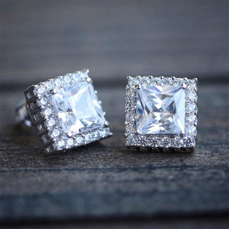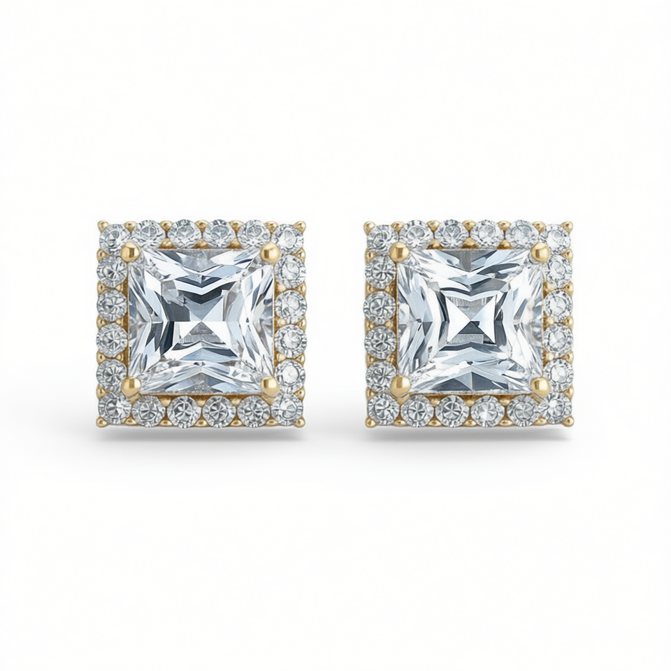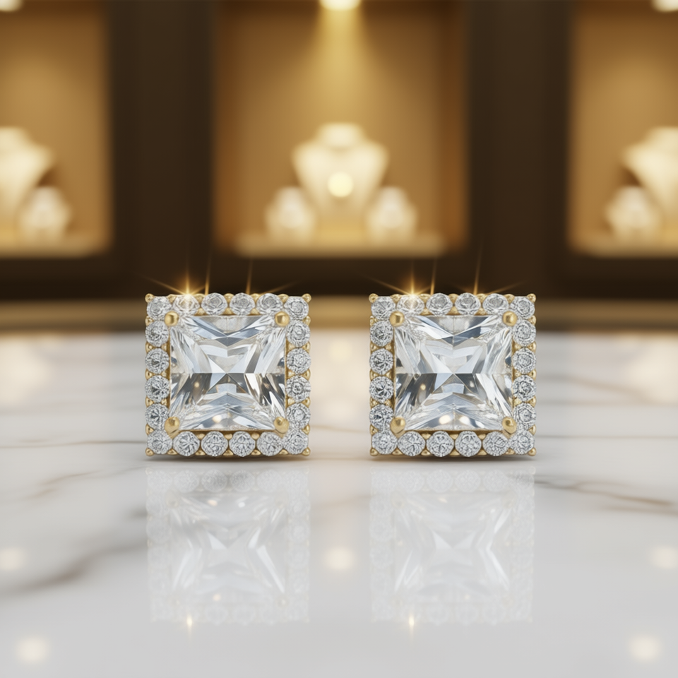 Orecchini in Oro Bianco con Diamanti Taglio Principessa, Oro Massiccio 18K, Colore D Naturale, Certificati GIA, Gioielli Classici da Sposa per Donna