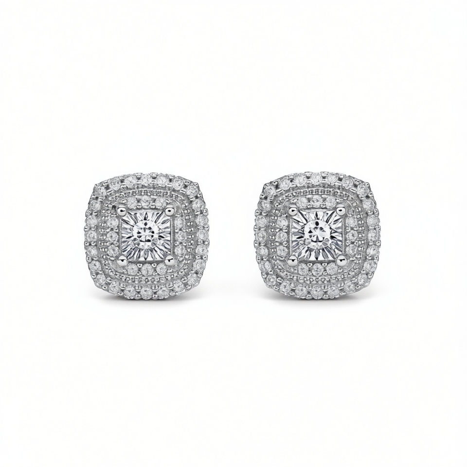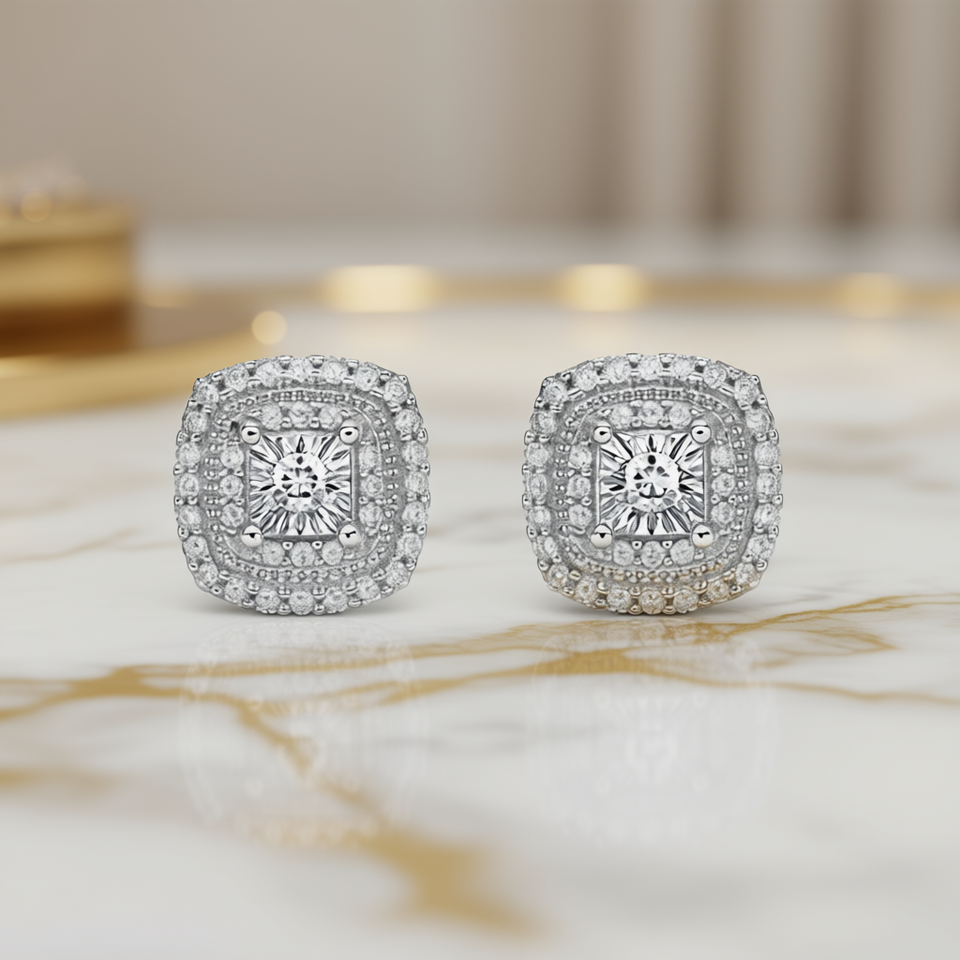 Orecchini in oro bianco con diamanti taglio princess e diamanti naturali per donna, stile classico da matrimonio