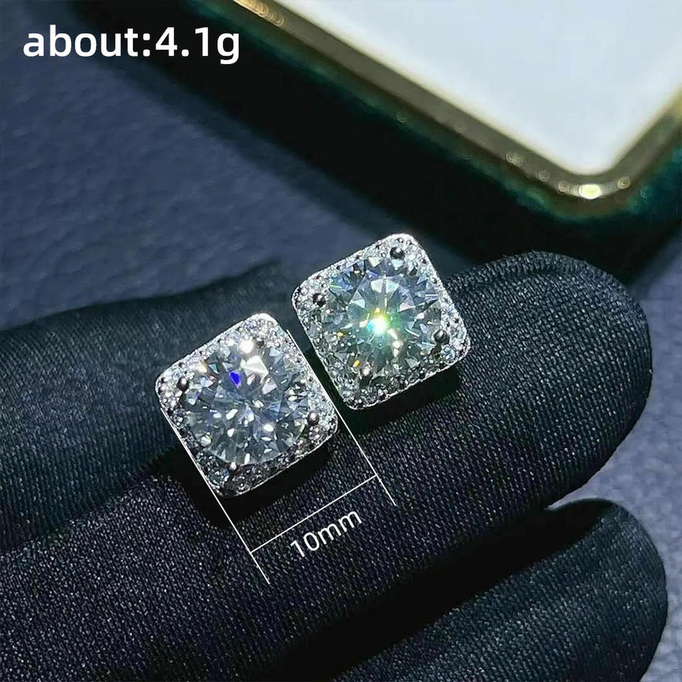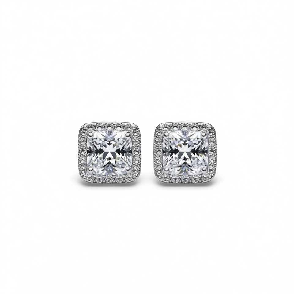 Orecchini a lobo da donna in oro bianco con zirconi taglio principessa, gioielli classici geometrici in lega per matrimonio