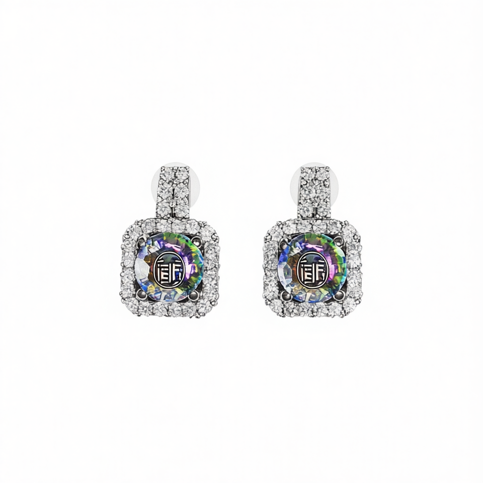 Orecchini a Perno Geometrici in Quarzo Arcobaleno con Oro Bianco e Diamanti Incastonati a Corona, Lussuosi per Uso Quotidiano Femminile E386