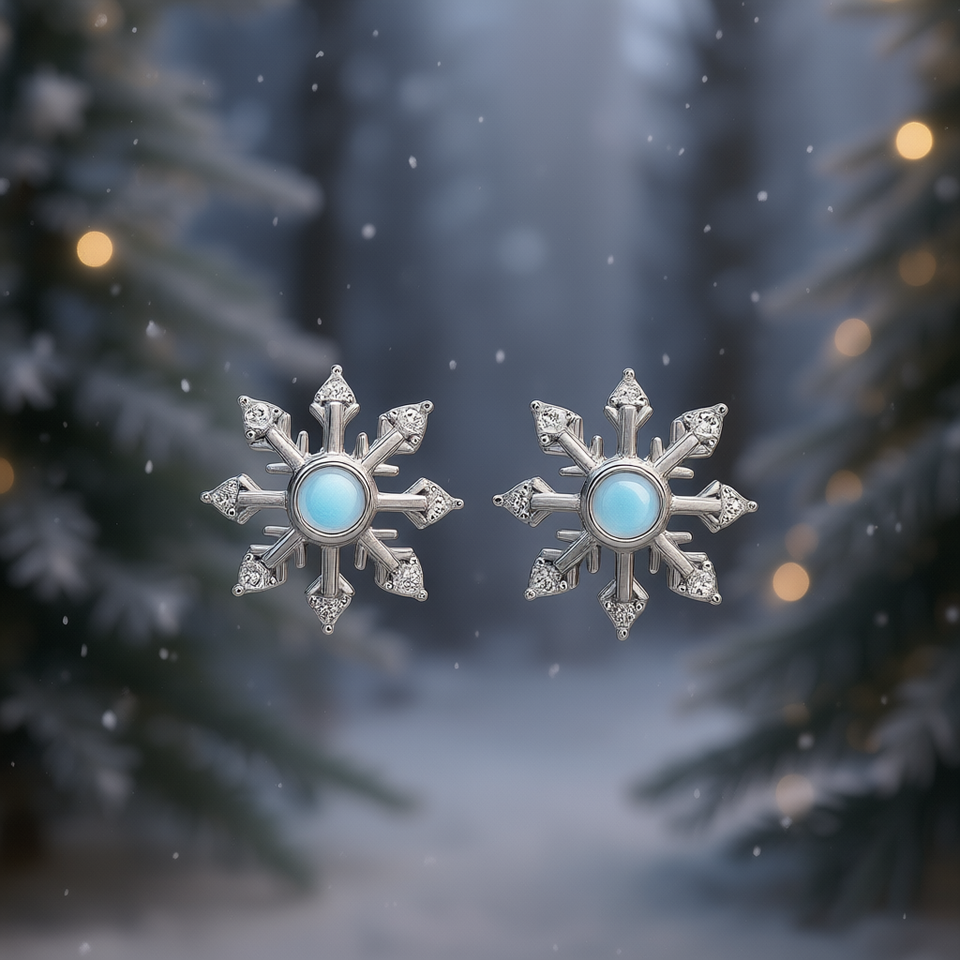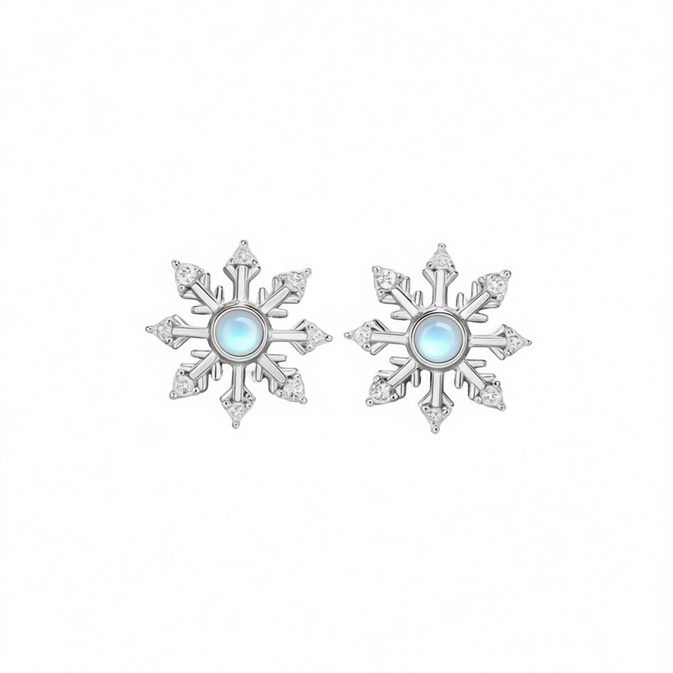 Orecchini a lobo con fiocco di neve in oro bianco e cristalli con incastonatura a castone, regalo per donna, gioielli alla moda e graziosi