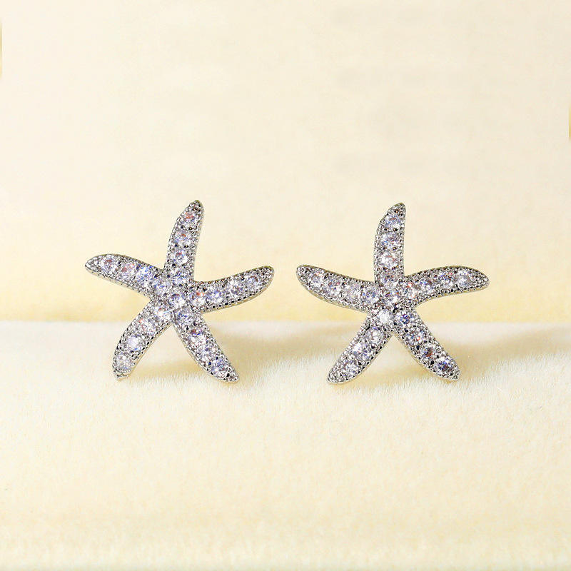 White Gold Starfish Diamond Earrings Round Brilliant Cut G Color Natural Diamonds Women's Classic Everyday Wear