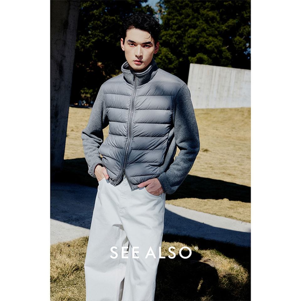 Giacca Invernale da Uomo in Stile Old Money, 90% Piumino d'Oca Bianco, Lavorazione a Maglia con Cerniera, Calda e in Lana