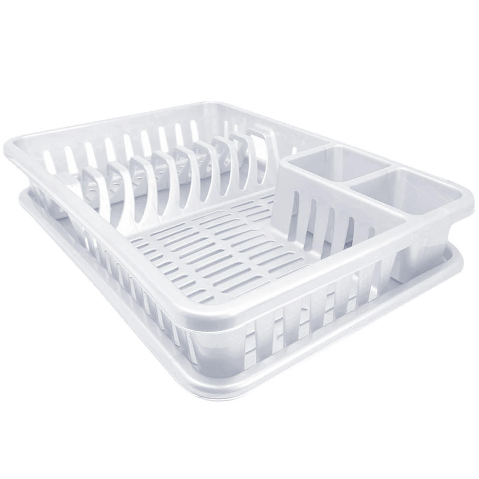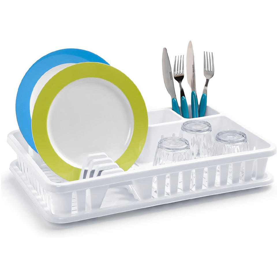 White/Green 45.5x36x7 cm Plastic Dish Drainer with 12 Holders and 3 Compartments Kitchen Organizer Kitchen Appliances