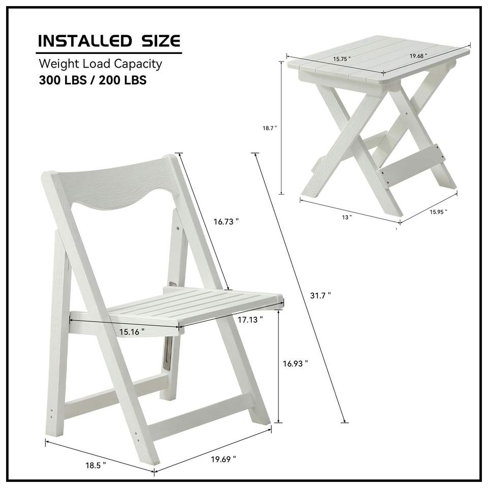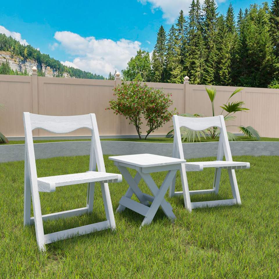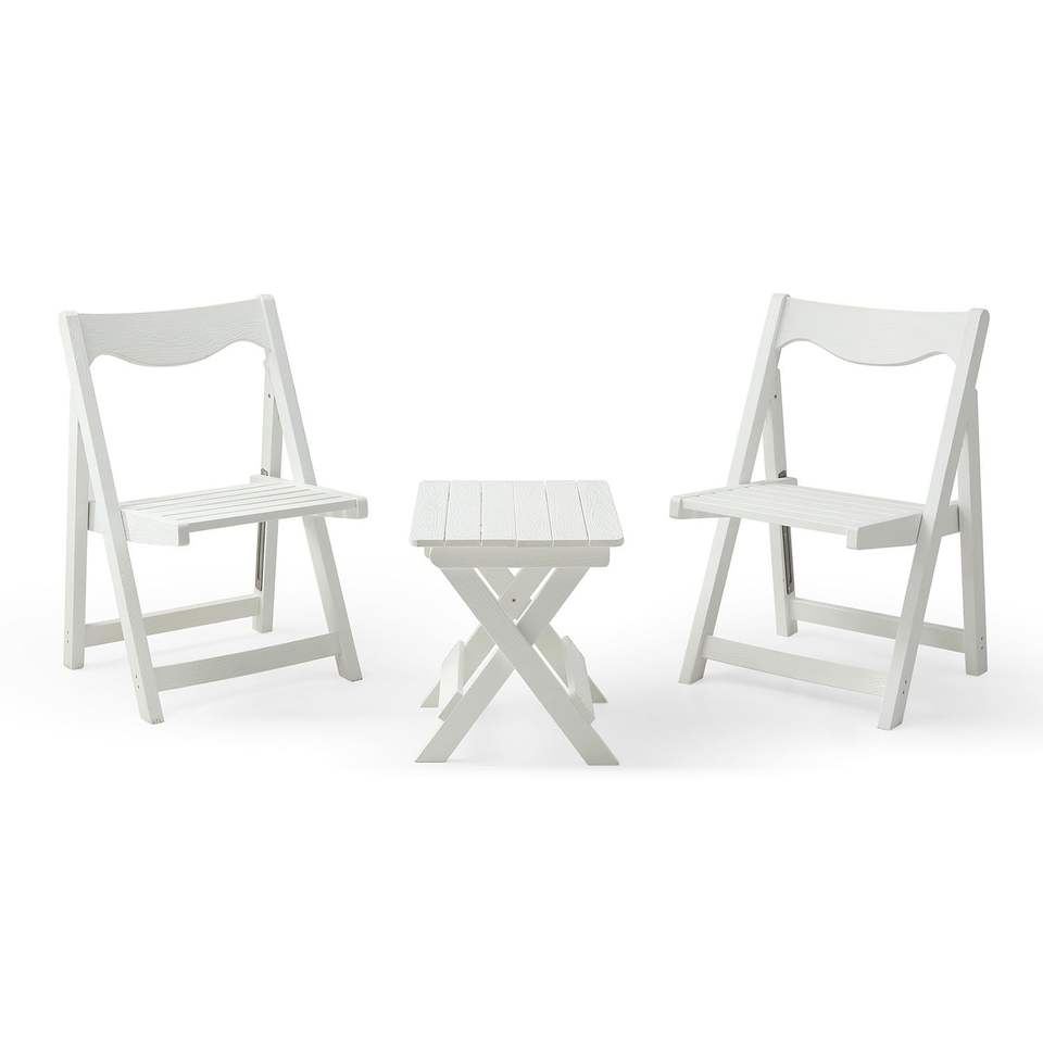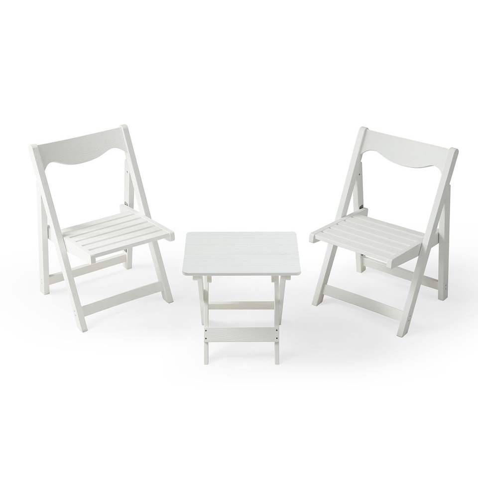 Set da Giardino Pieghevole in HIPS Bianco, Tavolo Piccolo e 2 Sedie, Set Tavolo Rettangolare e Sedie