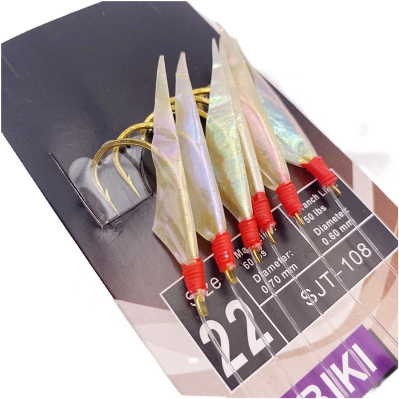 White Hage Skin Sabiki Rig Real Fish Skin String Hooks Sabiki Rig for Sea Luminous Soft Shrimp Fishing Hook Lure Sabiki Bait