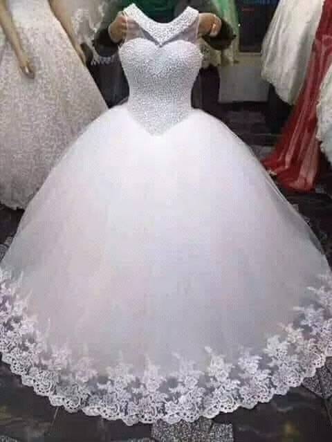 White Hand Pearls Beaded Puffy Plus Size Floor Length White Ivory Cheap Wedding Dresses MWA348