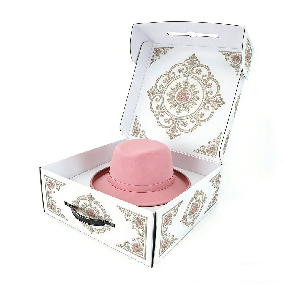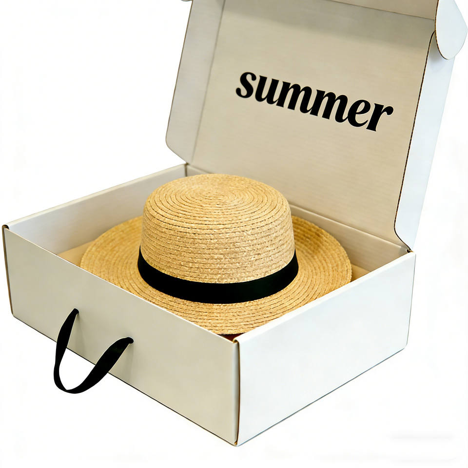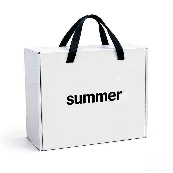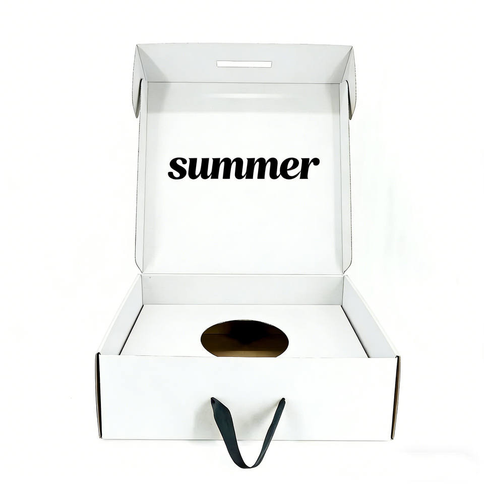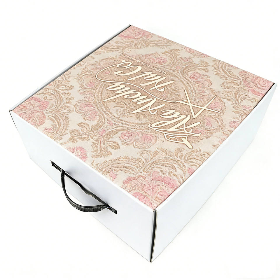 Scatola Regalo con Manico Bianco, Logo Personalizzato con Stampa in Lamina, Scatola in Cartone Ondulato Riciclabile per Spedizioni con Inserto