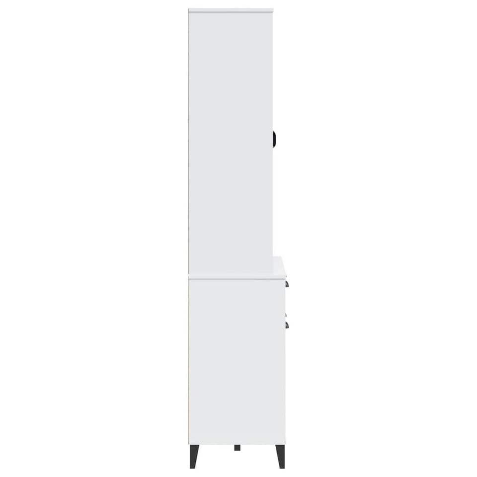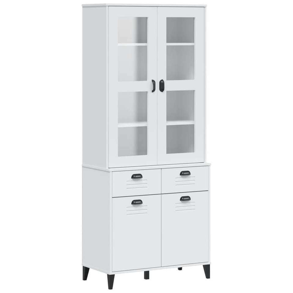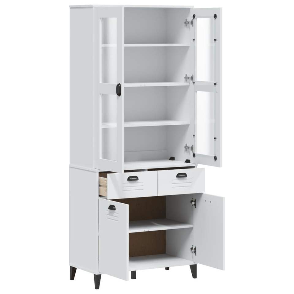 Vetrina bianca con ante in vetro e cassetti per riporre oggetti in sala da pranzo
