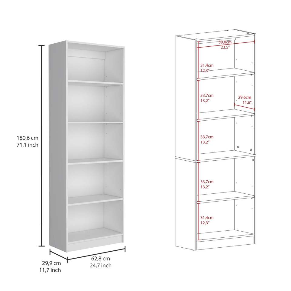 White Home Office Bookcase with 4 Multi-Tiered Shelves