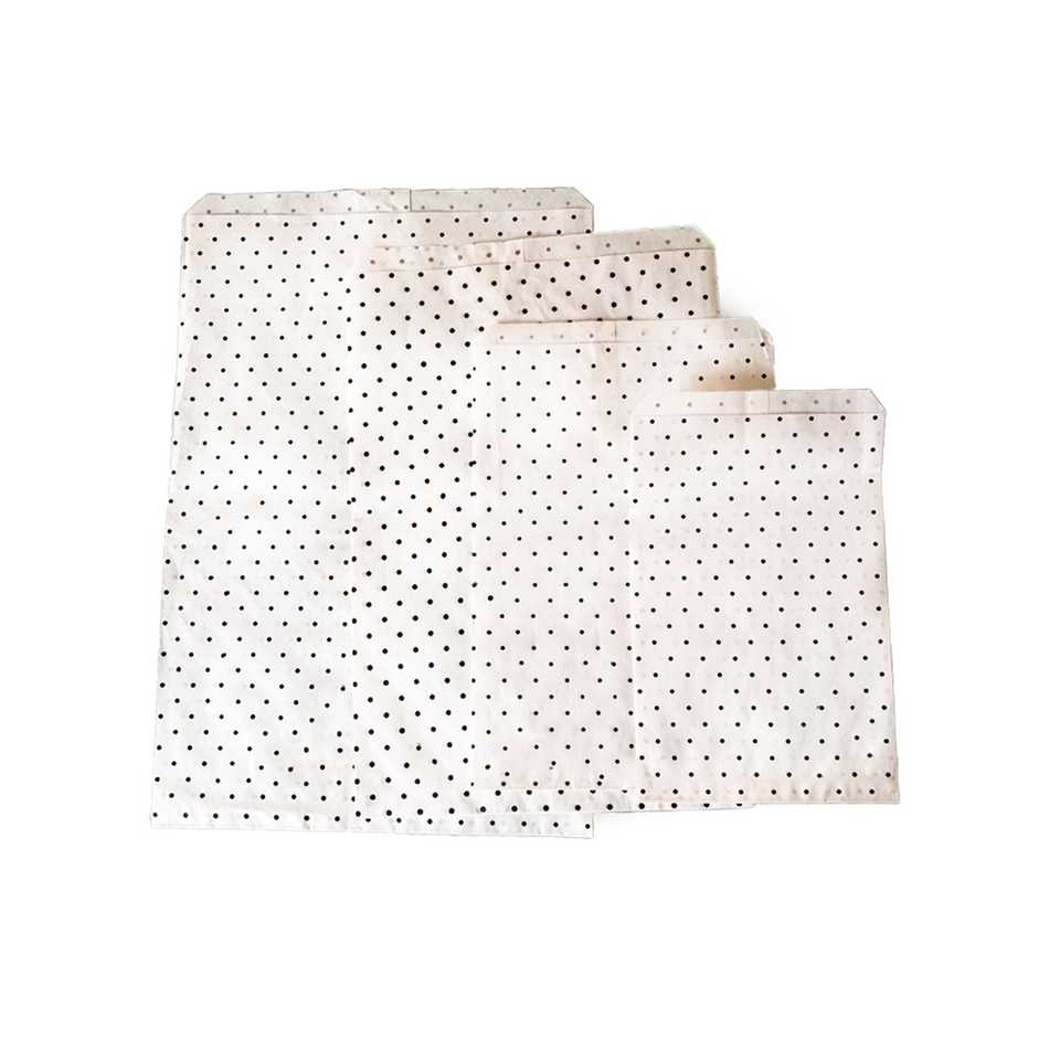 Borsa in carta Kraft bianca a pois, senza zanne, 14cm x 22cm