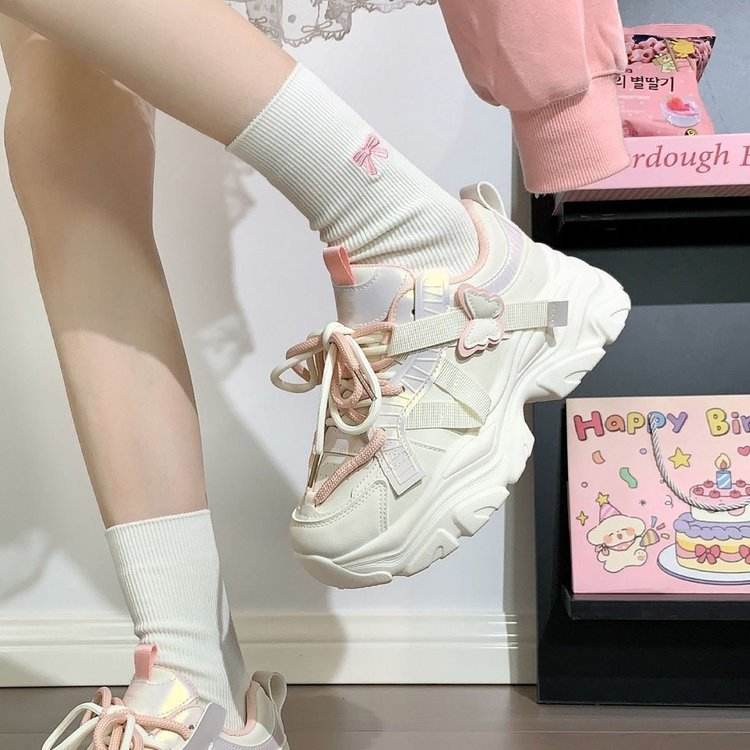 White Ladies Breathable and Comfortable Mesh Sports Shoes Lightweight and Wear-resistant Thick Sole Women Wedge Sneakers