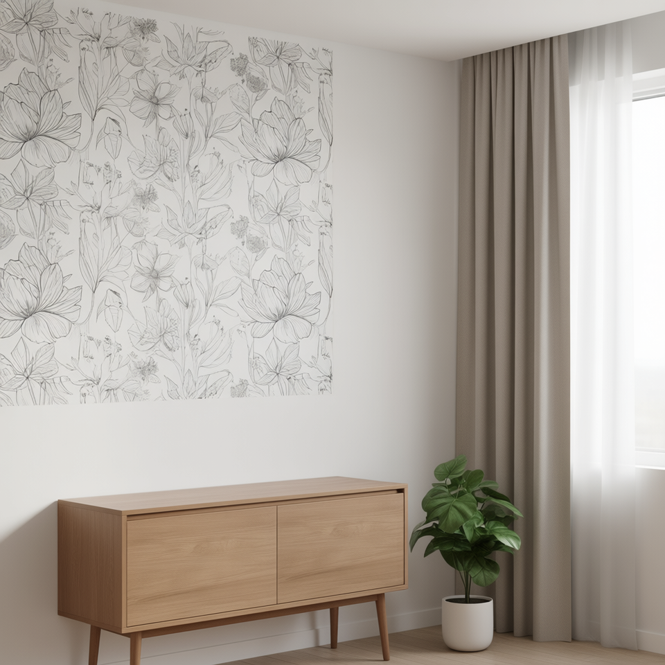 White Line Art Botanical Floral Peel Stick Wallpaper 45x1000 Cm Vinyl Self Adhesive Waterproof For Bedroom Office