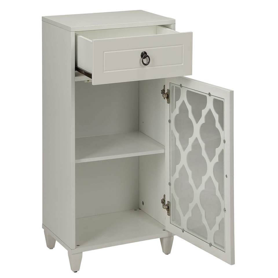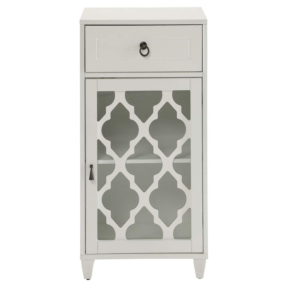 Mobiletto da soggiorno bianco con cassetto e anta
