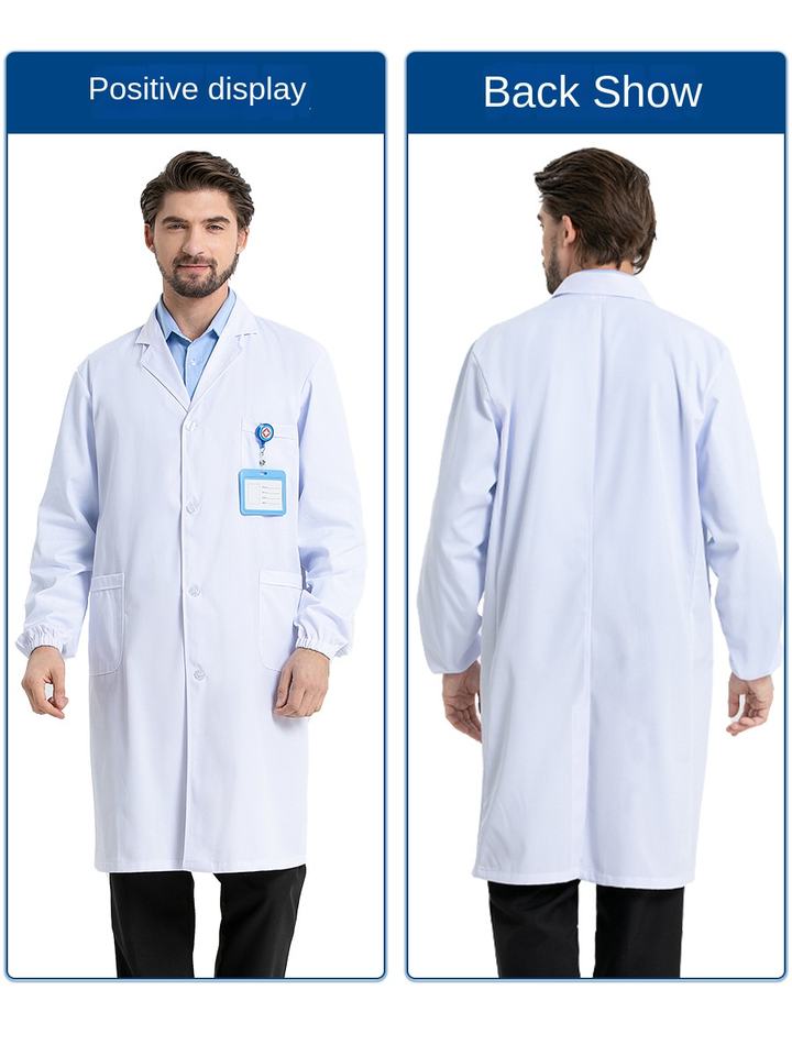 Bianco manica lunga Unisex camice da laboratorio per infermiere medico studenti universitari-medico uniforme abiti da lavoro stampato Logo