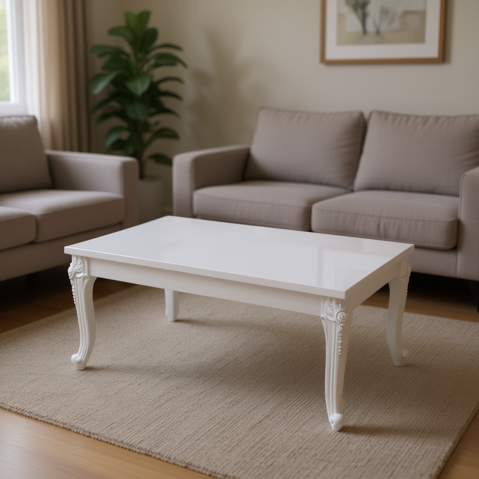 Tavolino da Caffè in MDF Bianco Lucido, Design Elegante per Arredamento Soggiorno
