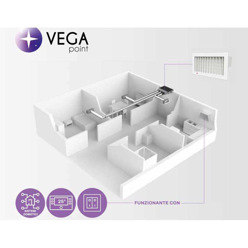 Bocchetta di uscita motorizzata regolabile in plastica bianca per sistemi HVAC, registri e griglie, installazione a soffitto - Tecnosystemi