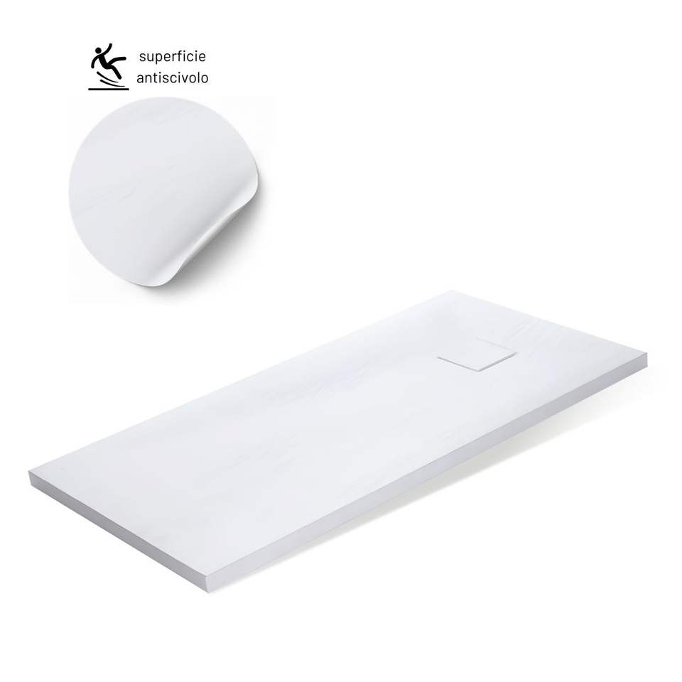 Piastra doccia in marmo minerale in resina bianca antiscivolo H4 CM misura L120 X P90 X H4 CM confezione 1 accessorio per doccia