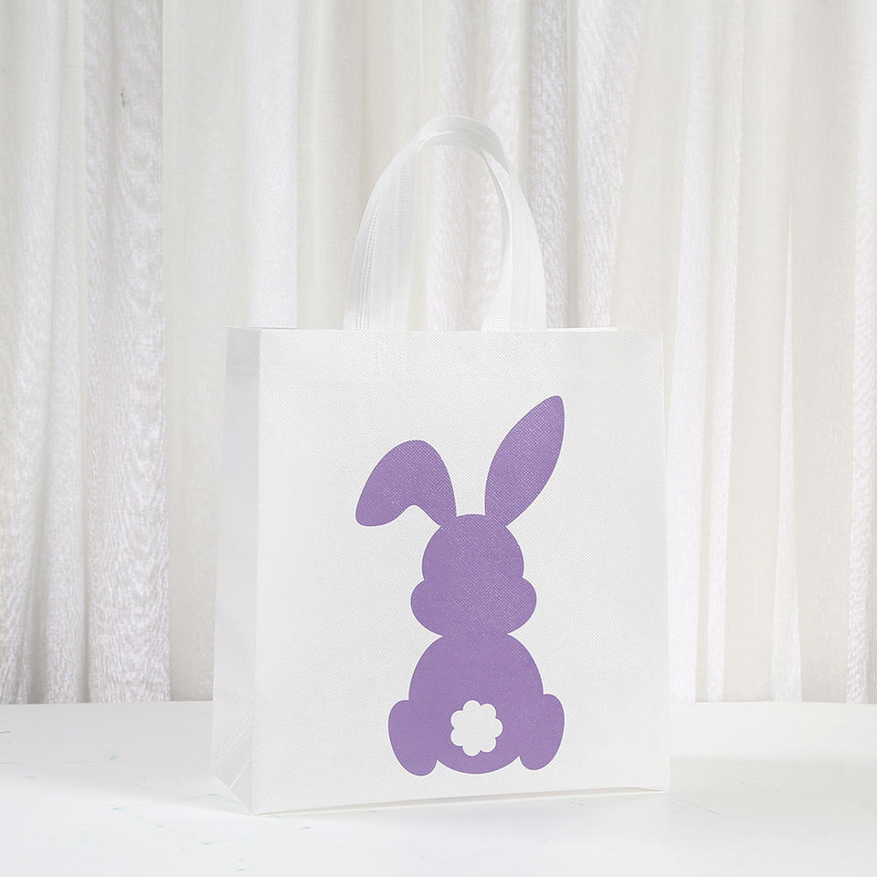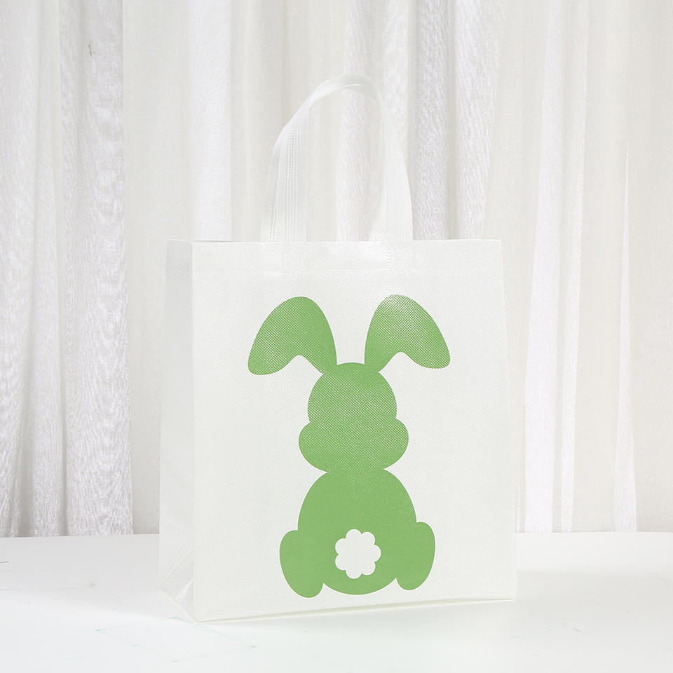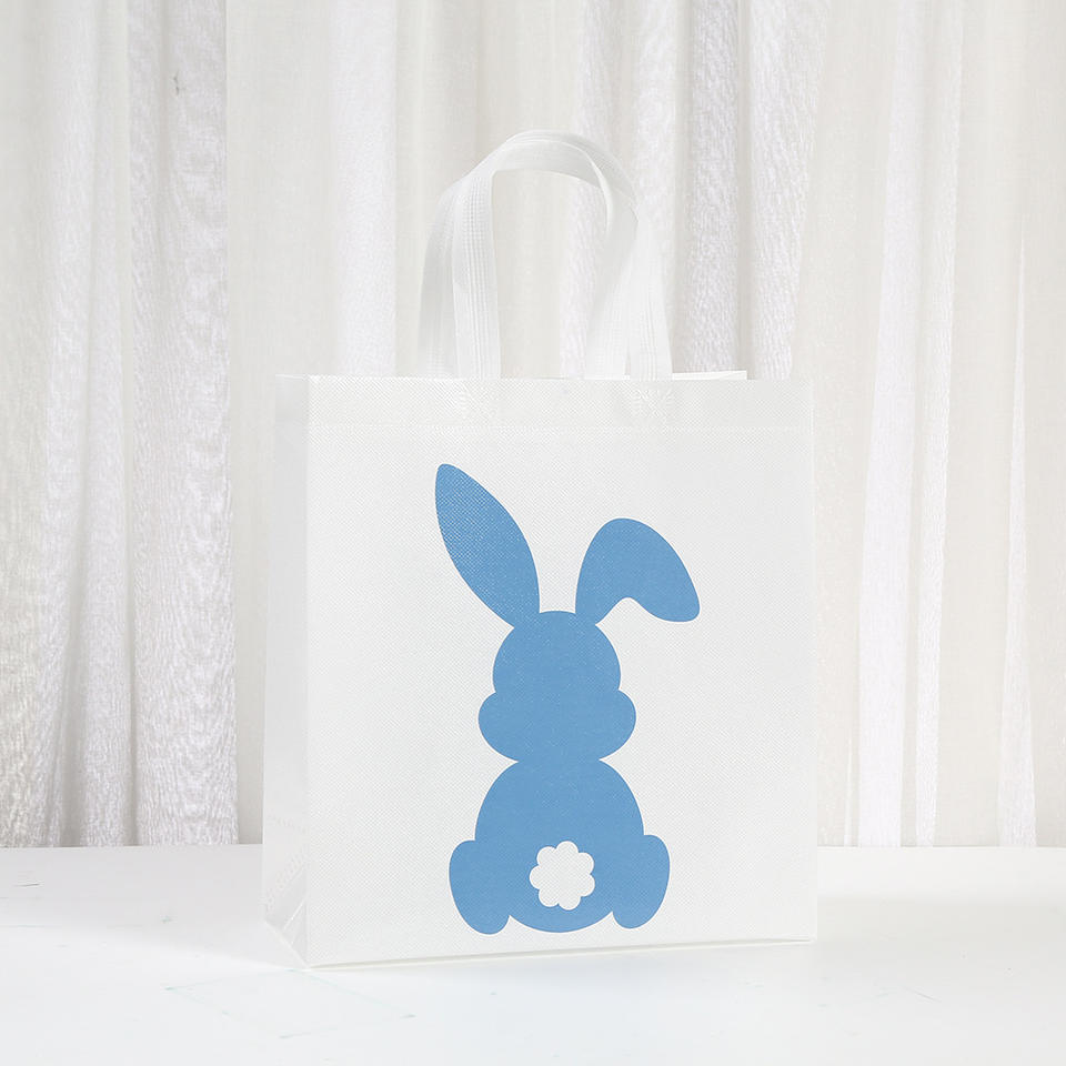 White Non-woven Easter Bunny Bags with Handles Goodies Candy Treat Bags Easter Party Supplies Gifts Wrapping