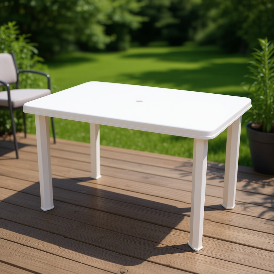 Tavolo da esterno bianco 39,8x26,8x28,3 cm in plastica resistente alle intemperie dal design minimalista