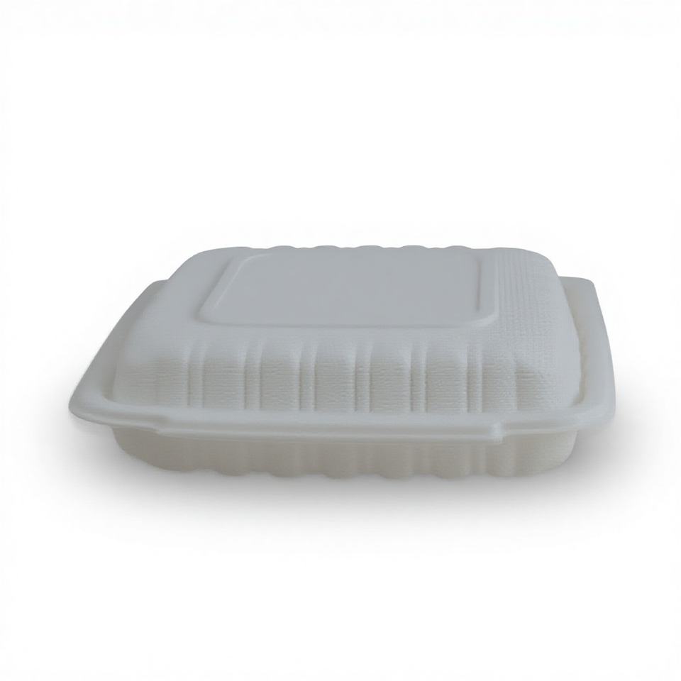 Contenitore per Alimenti in PP Bianco con Coperchio, 9x6 Pollici, Monoscomparto, Adatto al Microonde