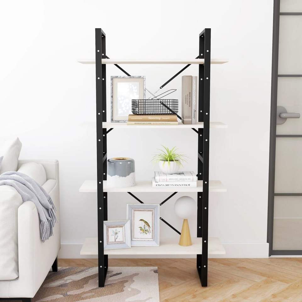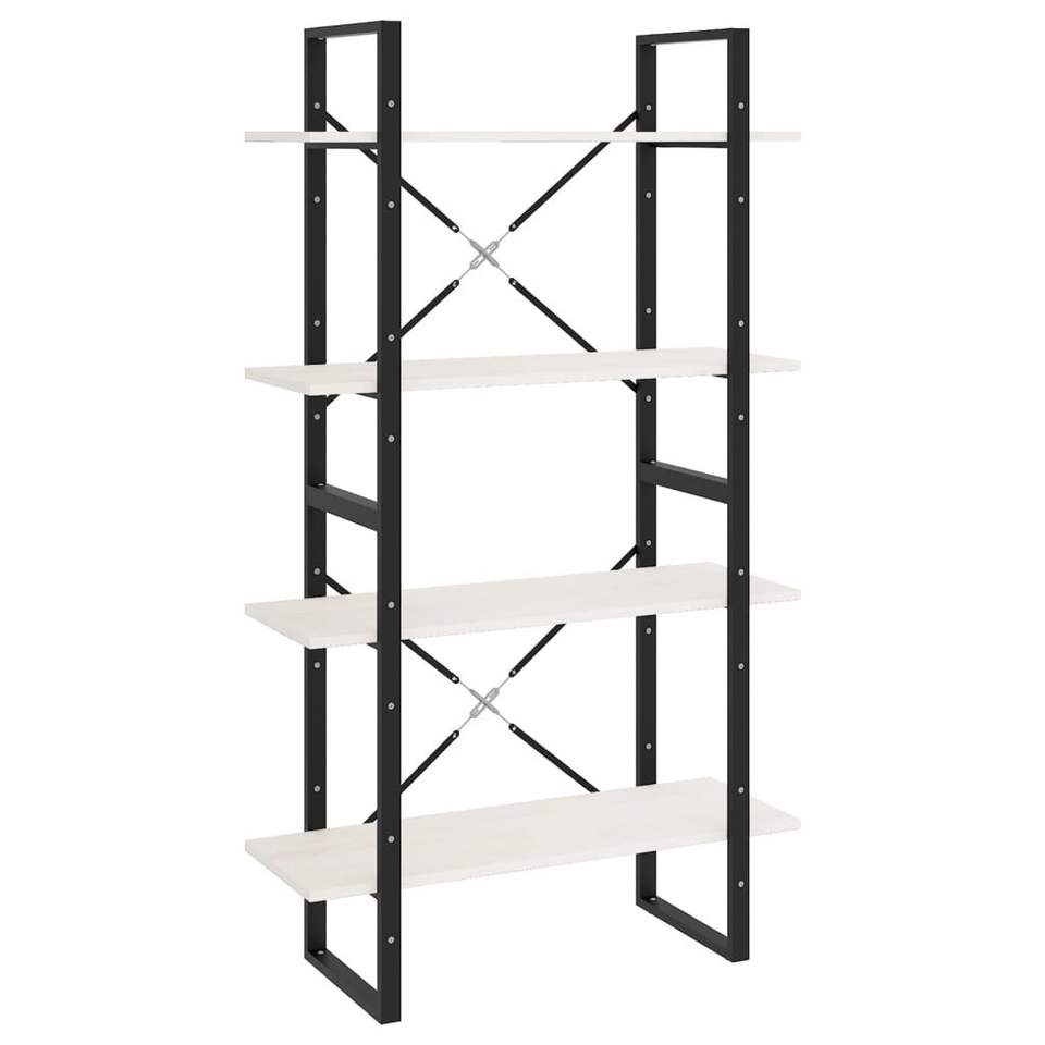 Libreria a 4 Ripiani in Legno di Pino Bianco con Altezza Regolabile, Scaffale Etagere per Soggiorno