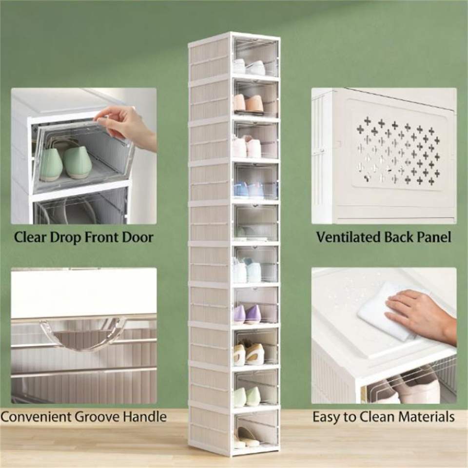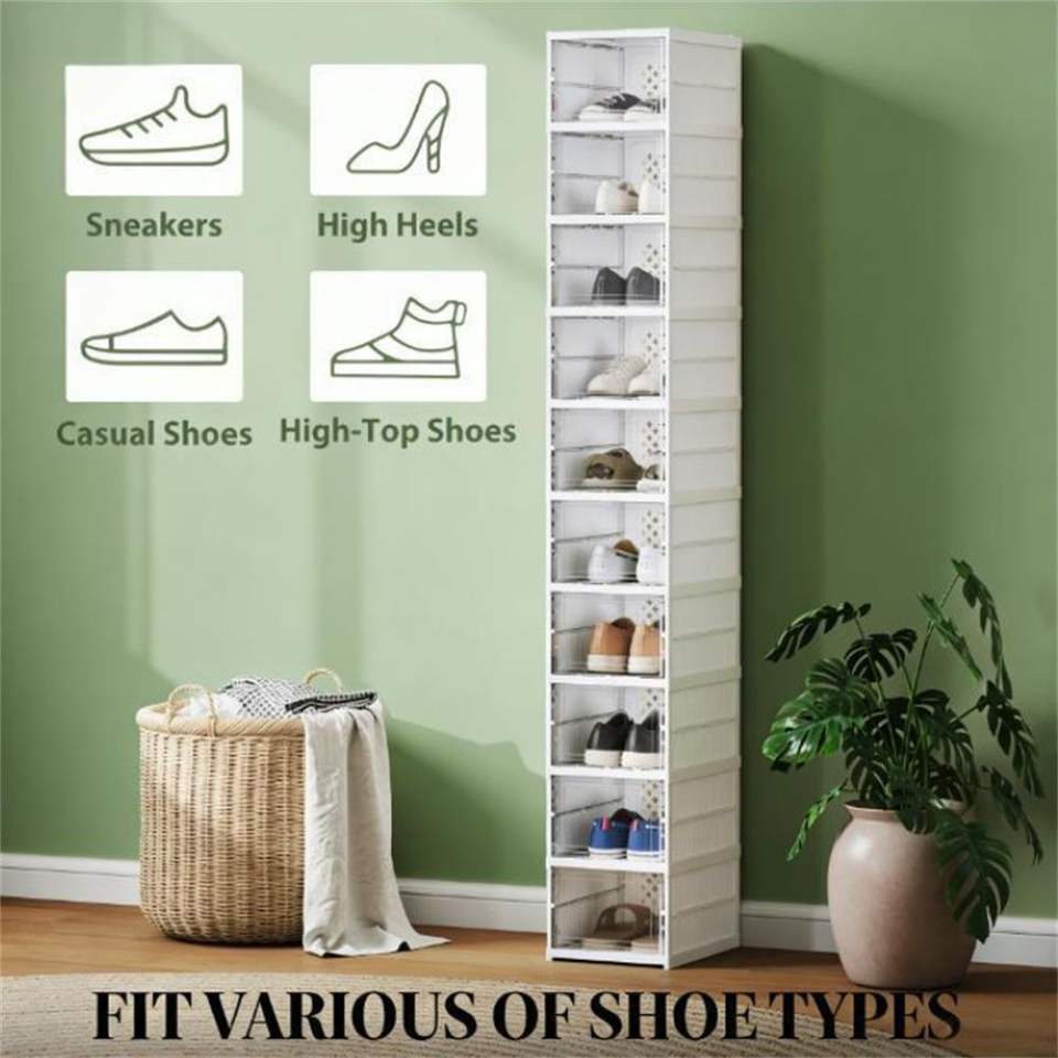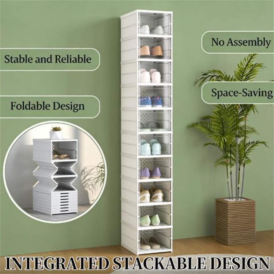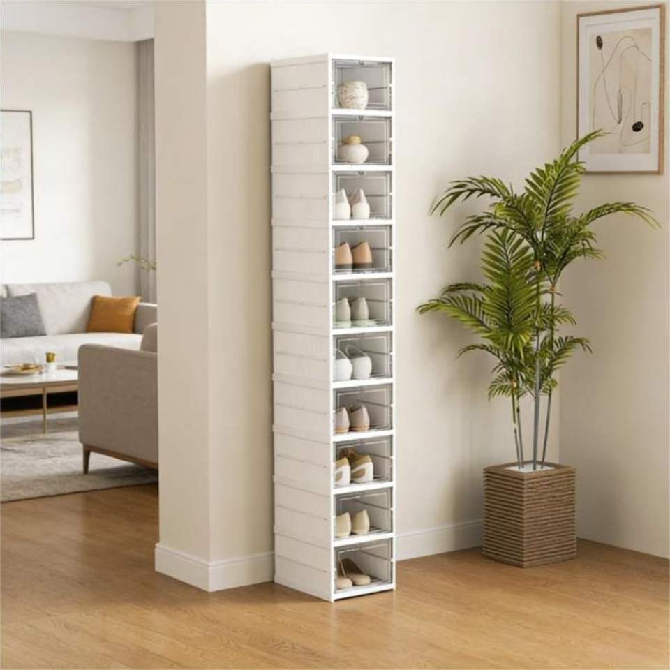 Scatola Portascarpe in Plastica Bianca e Scaffale Portascarpe Elegante