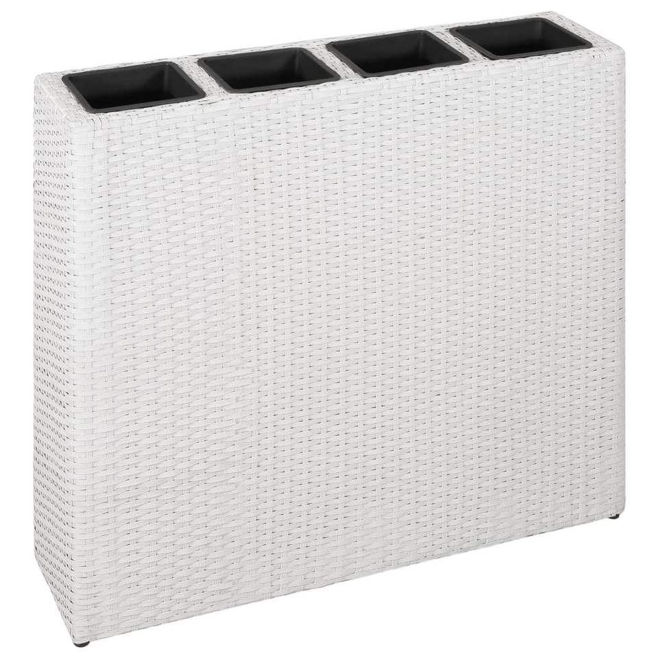 White Poly Rattan Garden Raised Bed with 4 Pots Flower Planters