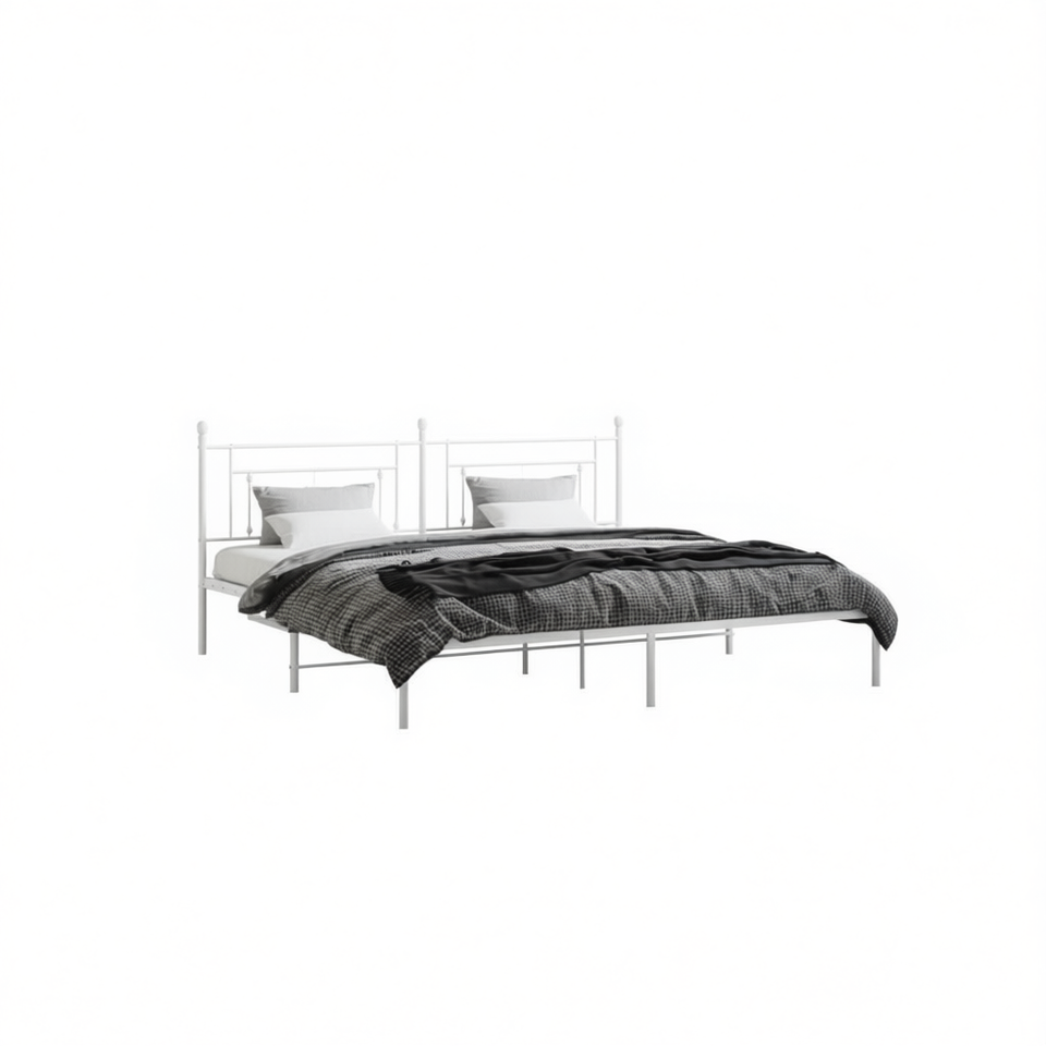 Struttura letto matrimoniale in acciaio verniciato a polvere bianca, letto in metallo minimalista per camera da letto, dimensioni standard
