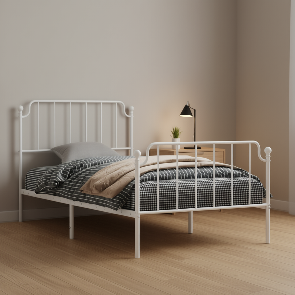 Struttura Letto Singolo in Acciaio Verniciato a Polvere Bianca, Design Minimalista, Arredamento Camera da Letto in Metallo Rettangolare