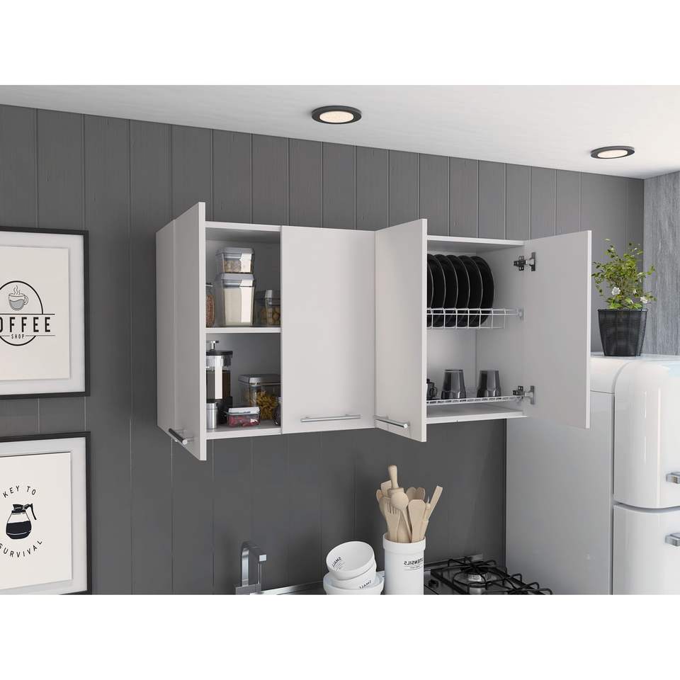 Armadio da Parete Bianco Rettangolare con Quattro Ante a Battente, Mobili da Cucina Stockton