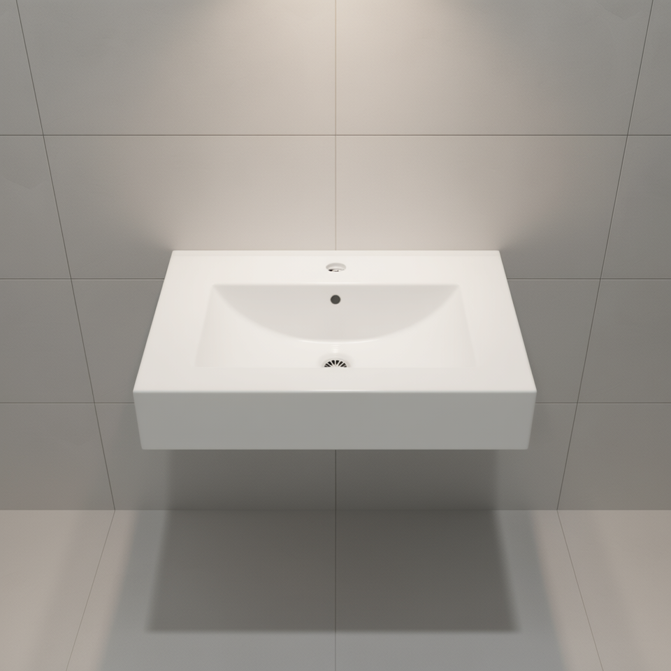 Lavabo Rettangolare in Ceramica Bianca 24x18 Pollici con Troppopieno per Bagno