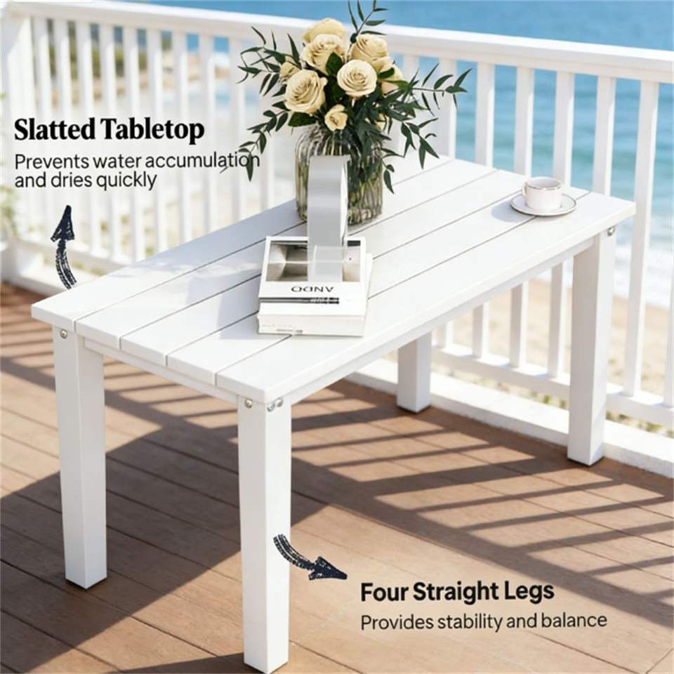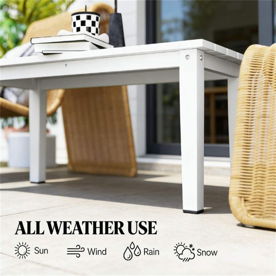 Tavolo Rettangolare Bianco da Esterno per Pranzo, Caffè o Uso in Terrazza e Giardino