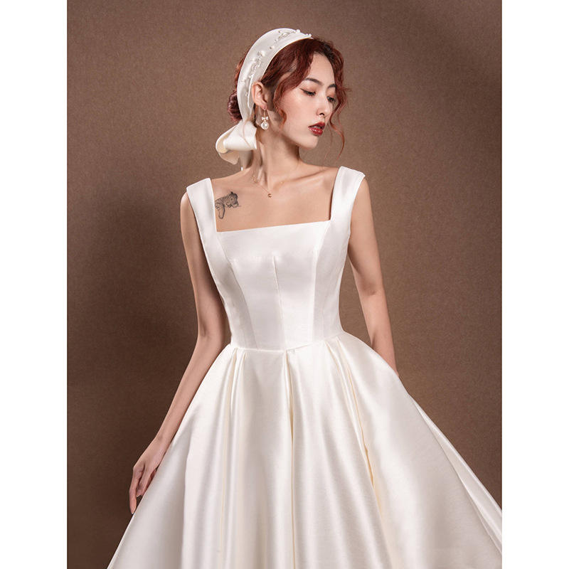 White Satin Bride Wedding Photo Dress Summer Formal Long Prom Evening Dresses for Women Cocktail Engagement Party Vestido