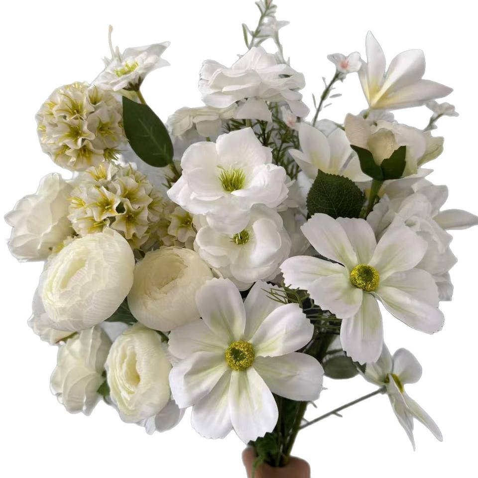White Series Wedding Artificial Flowers-Rose Lily Tulip & Hydrangea Arrangement for Photography Props & Home Decor