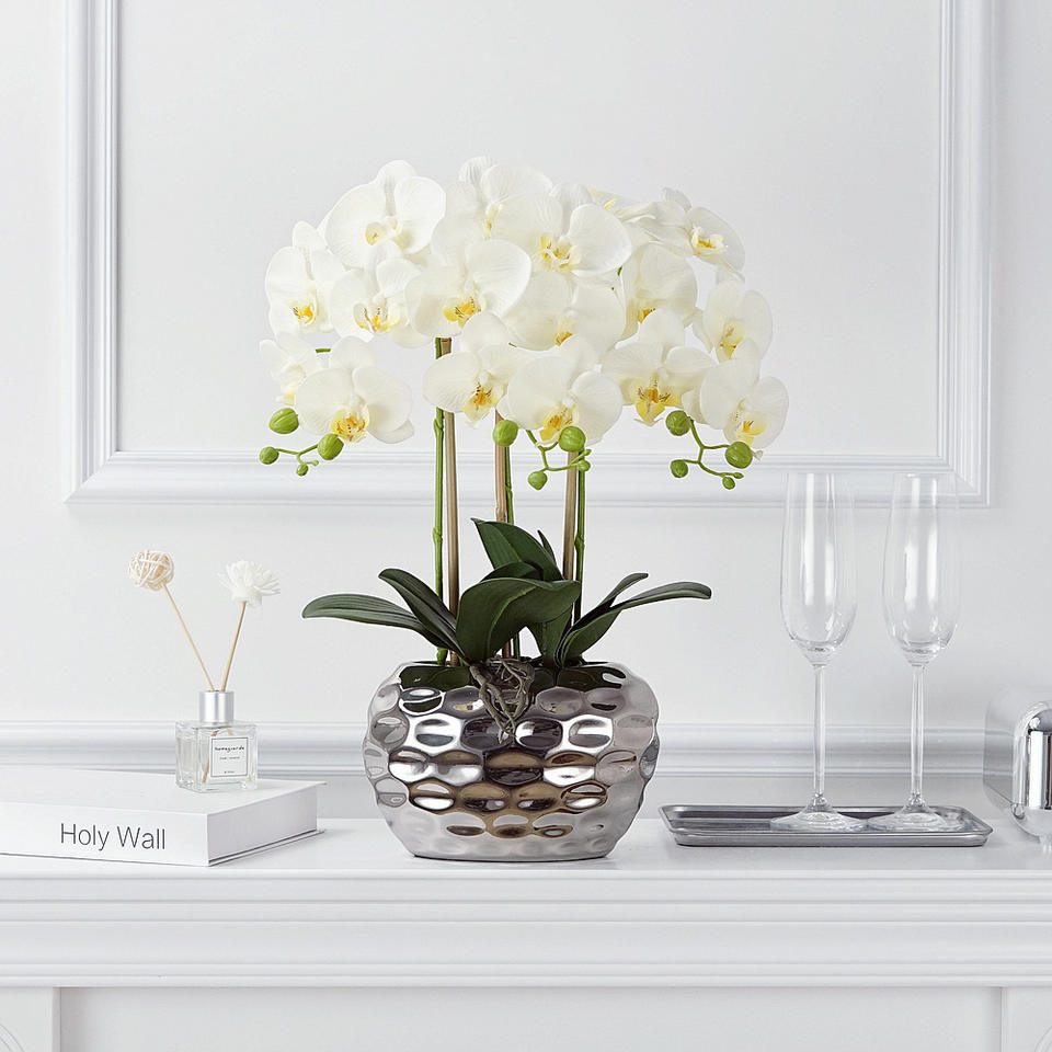White Silk Artificial Orchid Flower Vase for Home Table Decoration Colorful Chinese New Year Mother's Day Father's Day Christmas