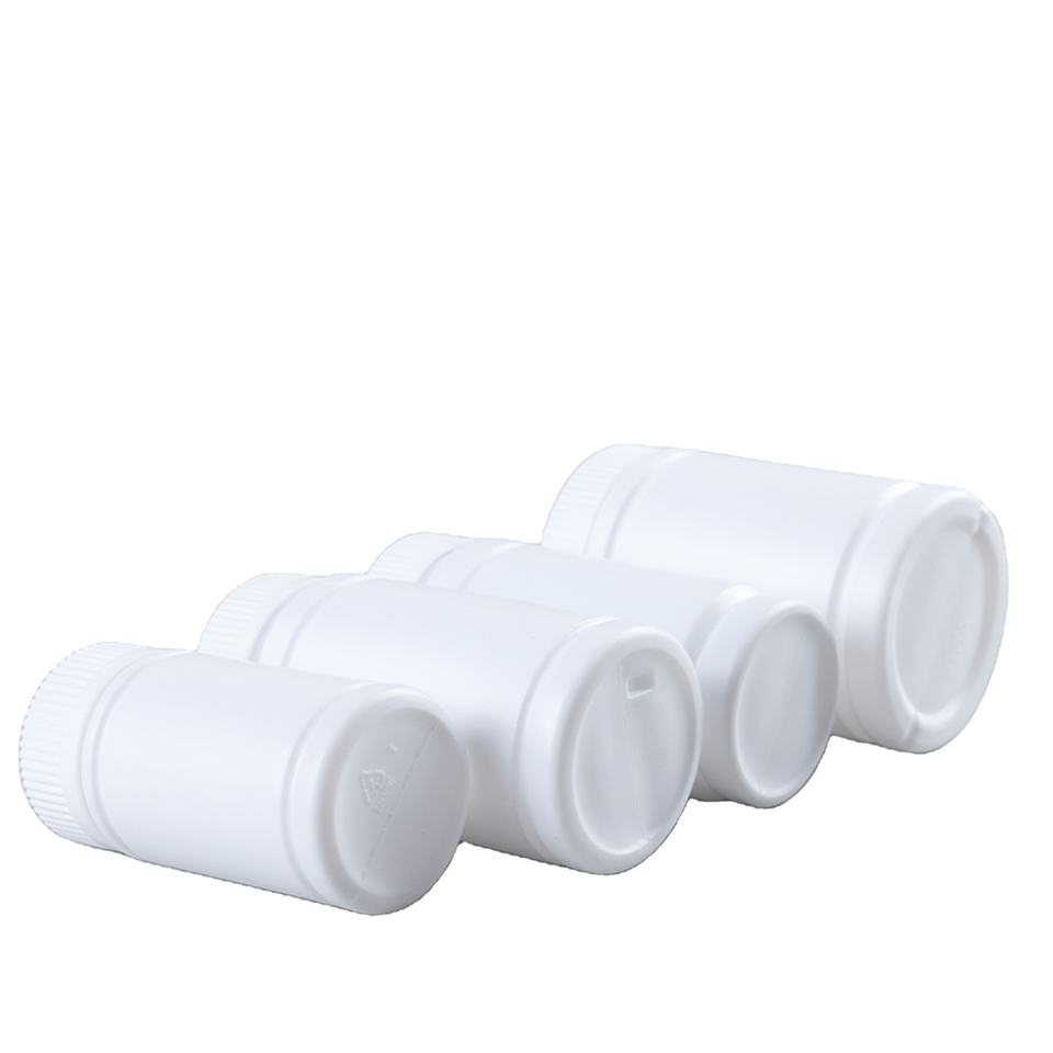 Flacone Capsule Bianco Slub 300cc in PE con Tappo Rotondo per Riempimento di Polveri e Compresse, Uso Agricolo