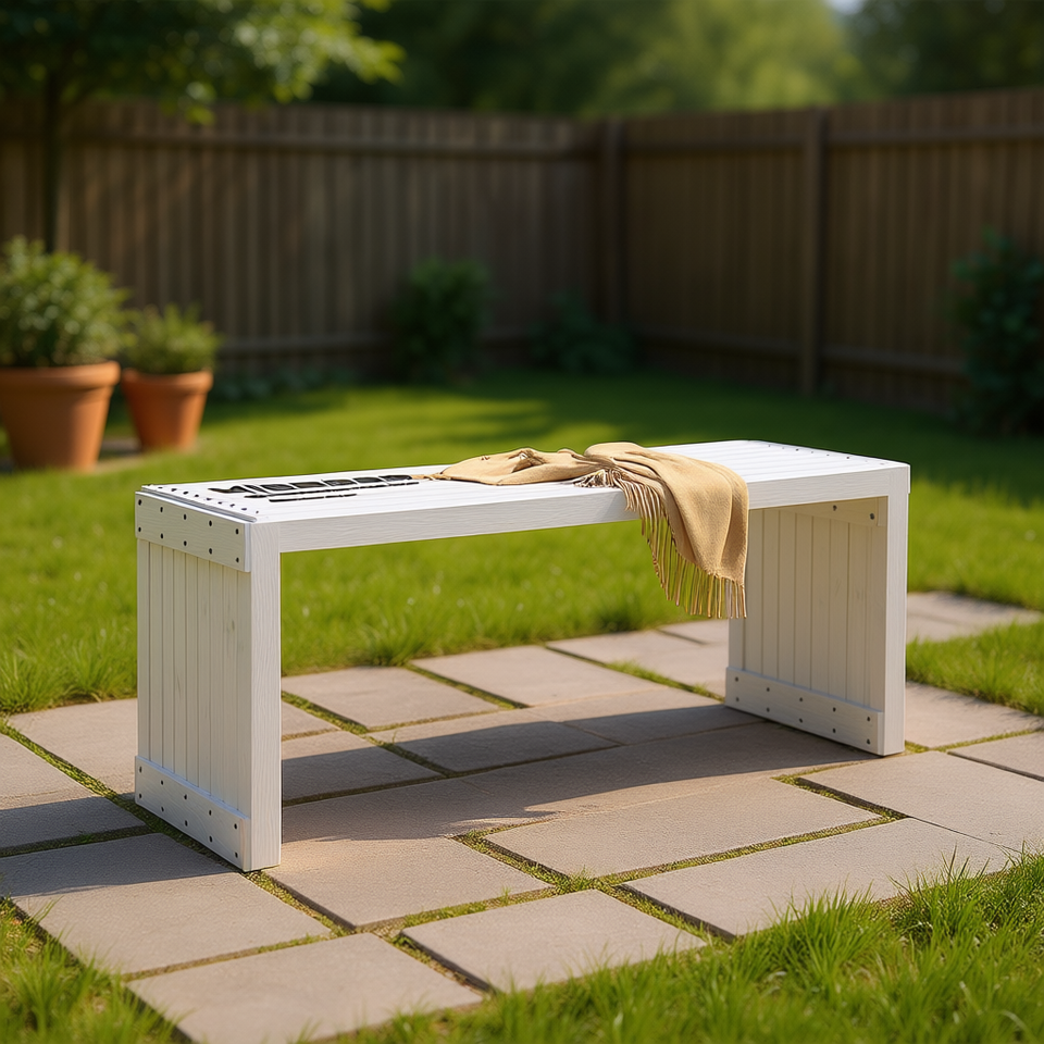 Panca da Giardino Estensibile in Legno di Pino Bianco Massiccio, Grande Panca da Patio, Arredo Esterno dal Design Moderno e Contemporaneo, 4 Posti