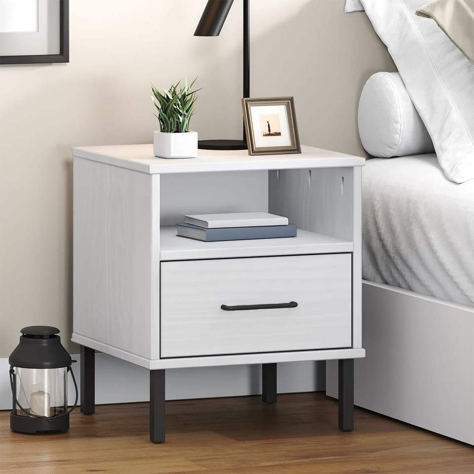 Comodino in Legno di Pino Bianco Massiccio con Cassetto, Mobile Moderno per Camera da Letto