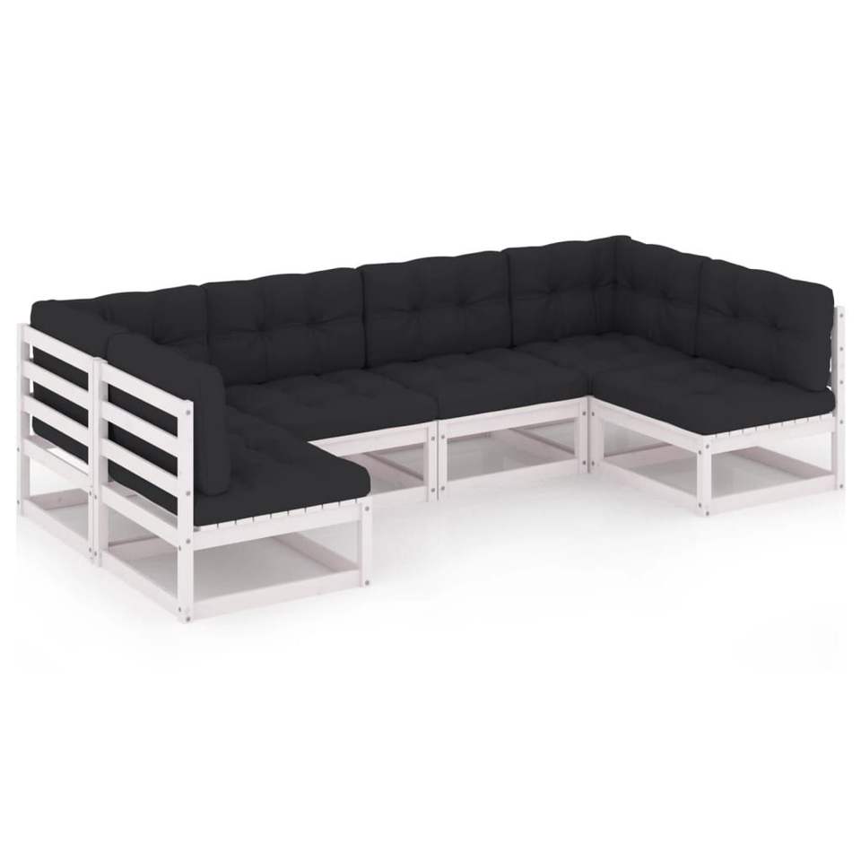 White Solid Wood Pine 6-Piece Patio Lounge Set with Cushions for Garden Lounging