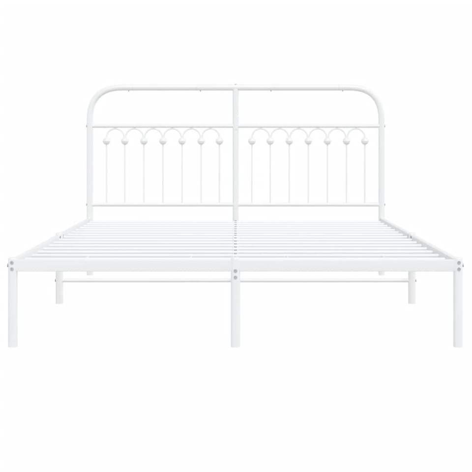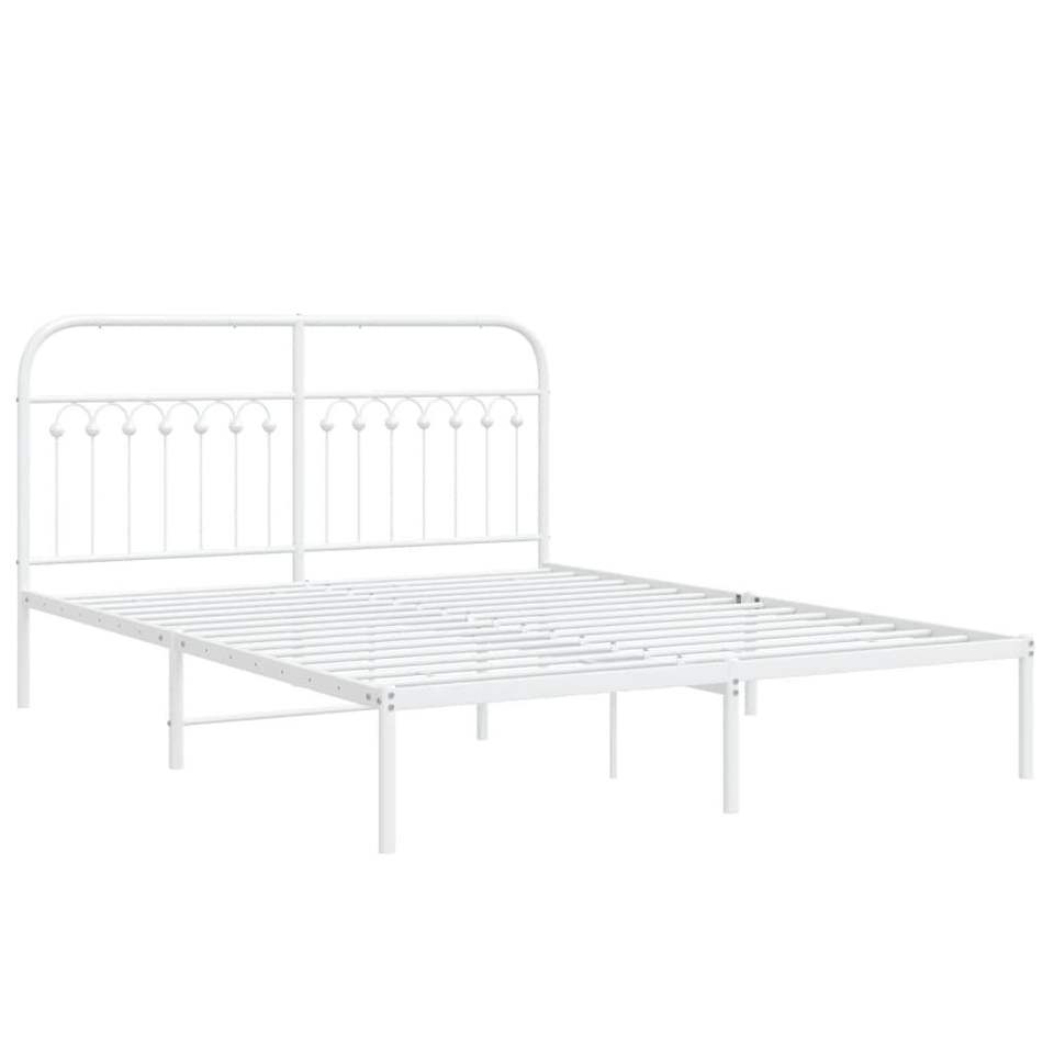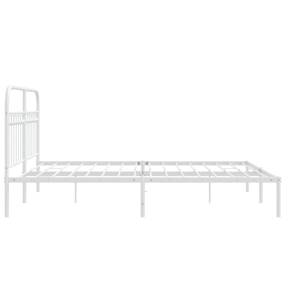 White Steel King Bed Frame Traditional Rectangular Metal Bed