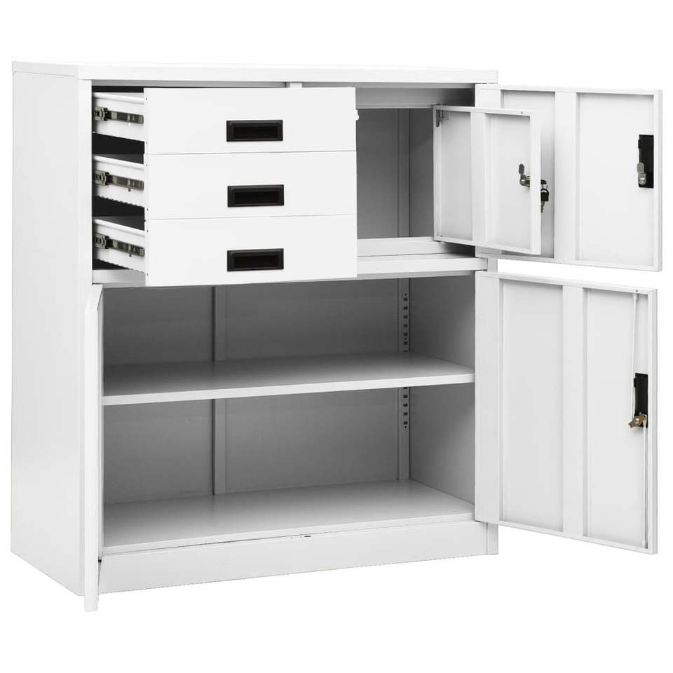 Armadio da Ufficio Medio in Acciaio Bianco, Armadietto Rettangolare per Archiviazione Documenti