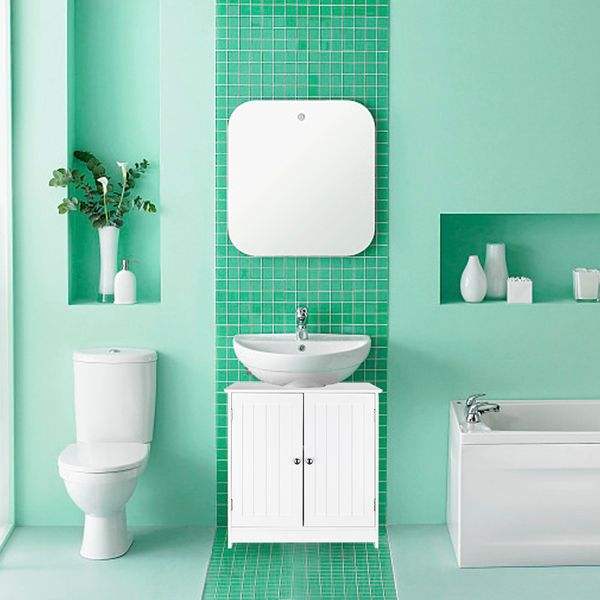 White Storage Furniture Bathroom Sink Cabinet Organizer