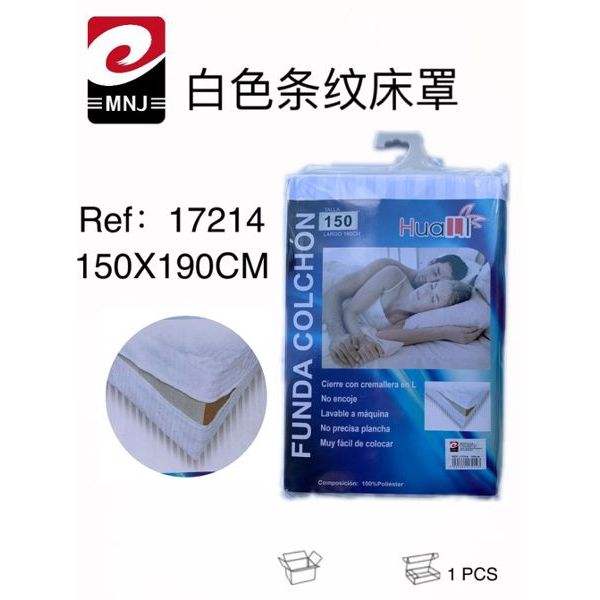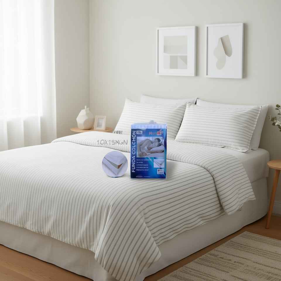 Coprimaterasso a Righe Bianche 100% Poliestere Traspirante per Tutte le Stagioni Lavabile in Lavatrice